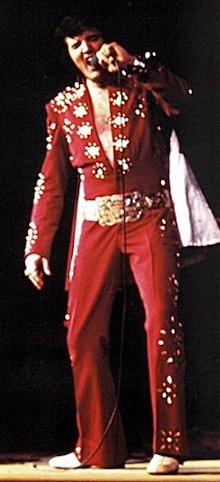 Reader Comment: Regarding your essay on "Burning Love," calling it his last "hit" record—I'll have to disagree somewhat. Besides the many major hits Elvis still had on the adult contemporary and country charts in the last 5 years of his life, he had plenty of singles reach the top 30 on the Billboard Hot 100 pop chart, reaching No. 14 with "Promised Land" in December 1974. While they were nowhere near the smash that "Burning Love" was, it stayed at No. 2 with a bullet for several weeks, unable to overcome Berry's novelty tune. They absolutely were hits that sold 45s and generated airplay. Perhaps changing the title and reference to "last major/big hit." — Mike (March 2017)