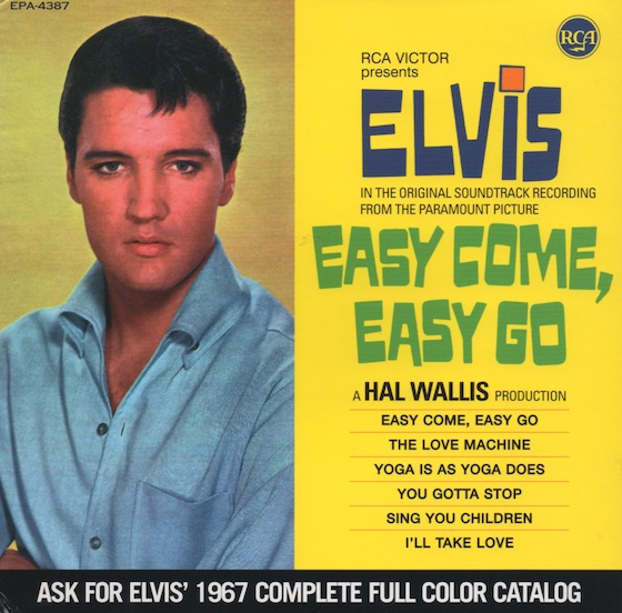 The final two Elvis EPs issued by RCA were also movie soundtracks. The “Tickle Me” EP released in June 1965 contained five previously released cuts from LPs dating back to 1960. Then, in March 1967, six new songs from the movie Easy Come, Easy Go were available on Elvis’s final EP from RCA. The format had played out in the record business, and that, along with declining interest in Presley’s movie career, resulted in low sales for these final Elvis EPs. “Tickle Me” sold only 100,000 copies, and “Easy Come, Easy Go” sold a dismal 30,000 copies, making it the worst selling vinyl record of Elvis’s career.