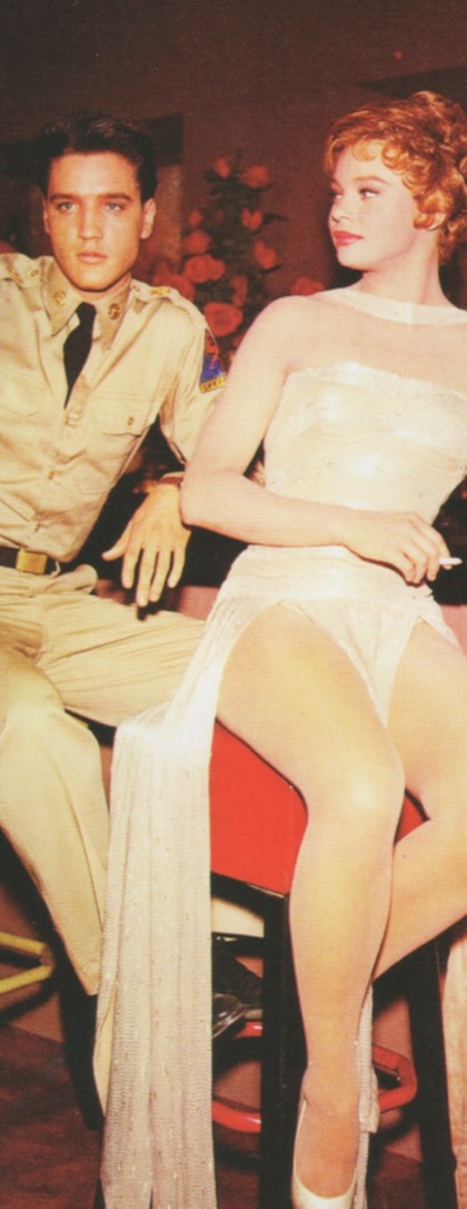 The female lead, as often happened in Presley’s career, received better reviews in the film than did Elvis. Variety noted, “Miss Prowse is a firstrate dancer and has a pixie charm reminiscent of Leslie Caron. She deserves better roles than this.” I have to admit that during my recent viewing I was more taken with her work in GI Blues than I had been in previous viewings years before. It’s difficult to take your eyes off of her legs during her two dance numbers, and she makes a believable transition from ice-hearted to vulnerable woman in the film. I found Tulsa and Lili’s day out together, during which their affection for each other builds, to be the most pleasant segment in the film. In terms of on-screen chemistry in Elvis films, I would rate the Presley-Prowse match second only to Elvis and Ann-Margret.