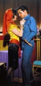 As for the musical soundtrack, which so concerned me on first viewing Roustabout back in 1964, it turned out to be a mixed bag. Since Elvis played a singer in the film, all 10 songs he performed, with the possible exception of the finale, fit nicely into the flow of the story. His four carnival stage numbers, “One Track Mind,” “Hard Knocks,” “Little Egypt,” and “Big Love, Big Heartache,” all effectively feature a spotlight on Elvis against dark backgrounds. The staging of the “Little Egypt” number is the musical highlight of the film.