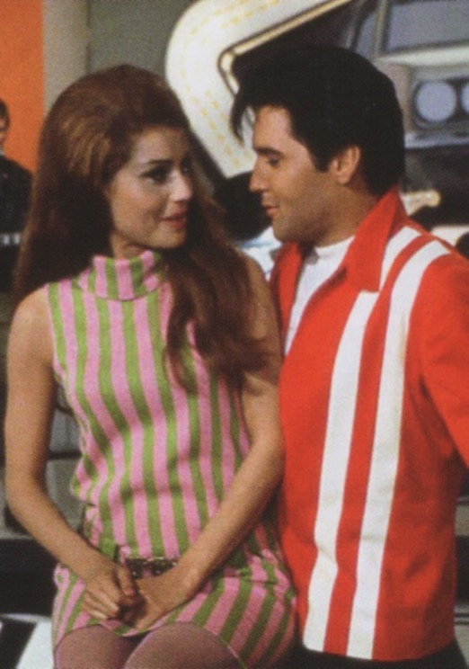 By coupling Nancy Sinatra with Elvis, MGM hoped to create a screen chemistry between the two similar to that of Ann-Margret and Presley in Viva Las Vegas four years earlier. Miss Sinatra had become an international star after her recording of “These Boots Are Made for Walkin'” reached #1 early in 1966. She added a string of other hit records leading up to the filming of Speedway in mid-1967.